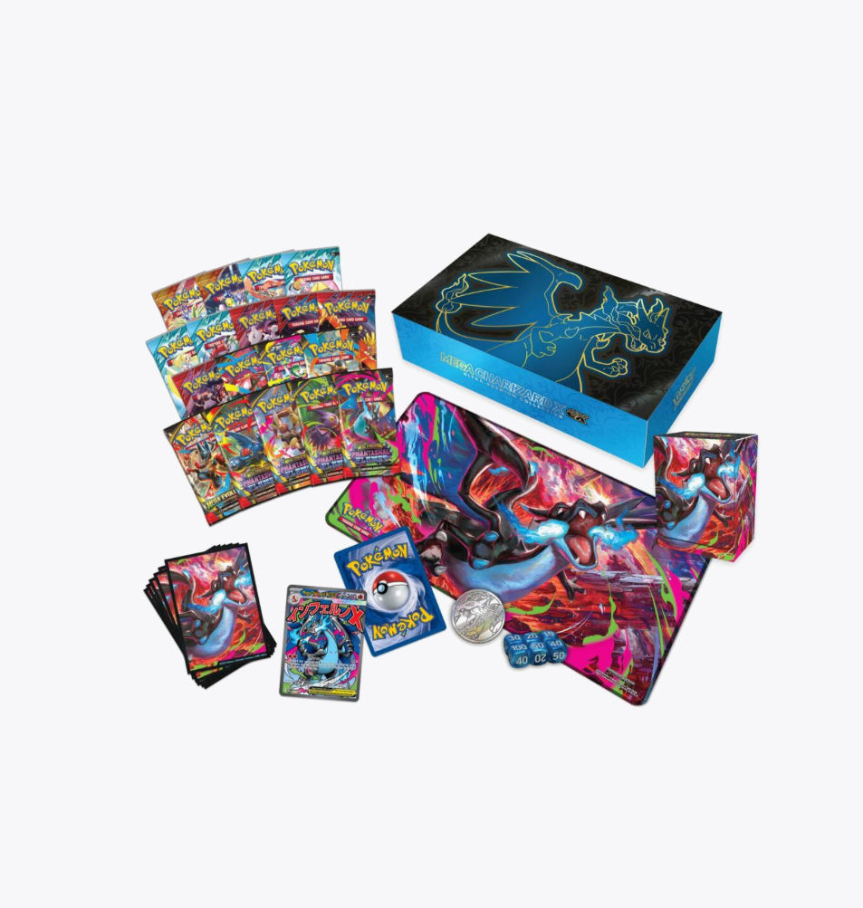 The Pokémon TCG: Mega Charizard X ex Ultra-Premium Collection includes: